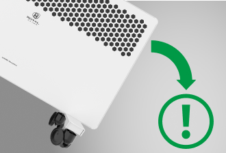 При наклоне конвектора более чем 45 °C срабатывает система отключения конвектора.