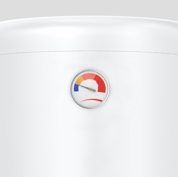Термометр на фронтальной части прибора позволяет визуально контролировать температуру воды внутри бака.